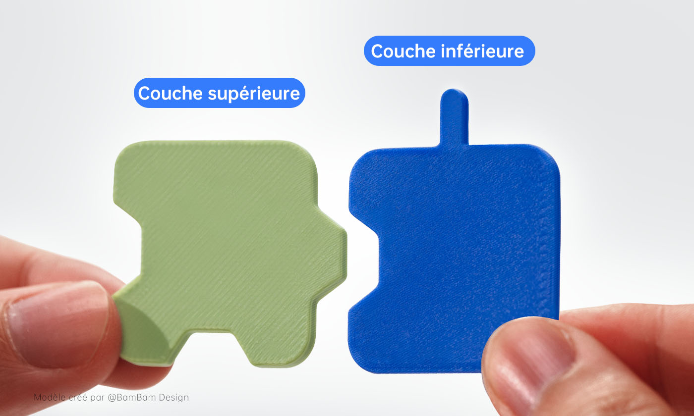 Le traitement de surface spécial confère une texture mate à la première couche. Il réduit la réflexion de la lumière et donne à la première couche une texture similaire à celle du modèle imprimé. La texture du modèle est ainsi uniforme et homogène sur toutes les faces.