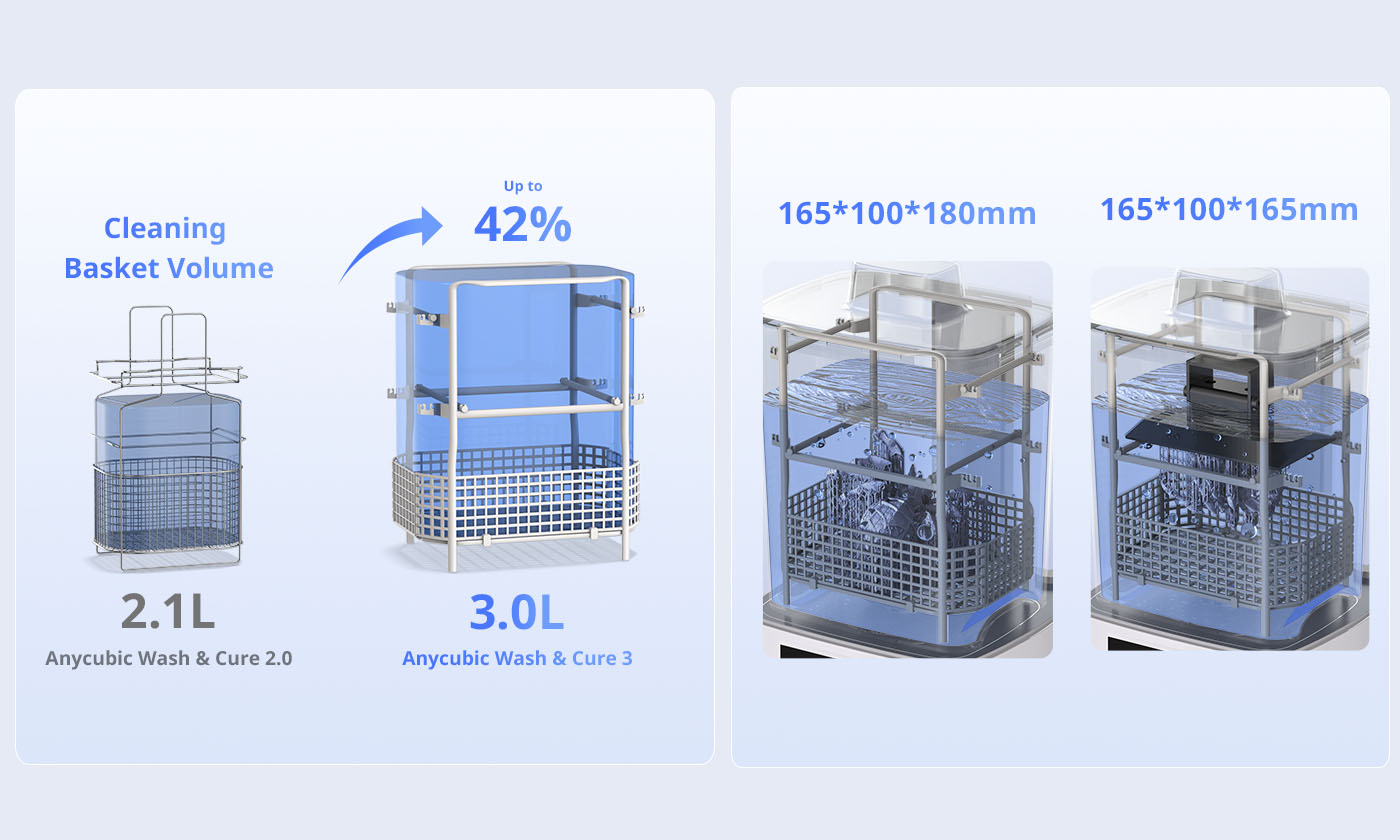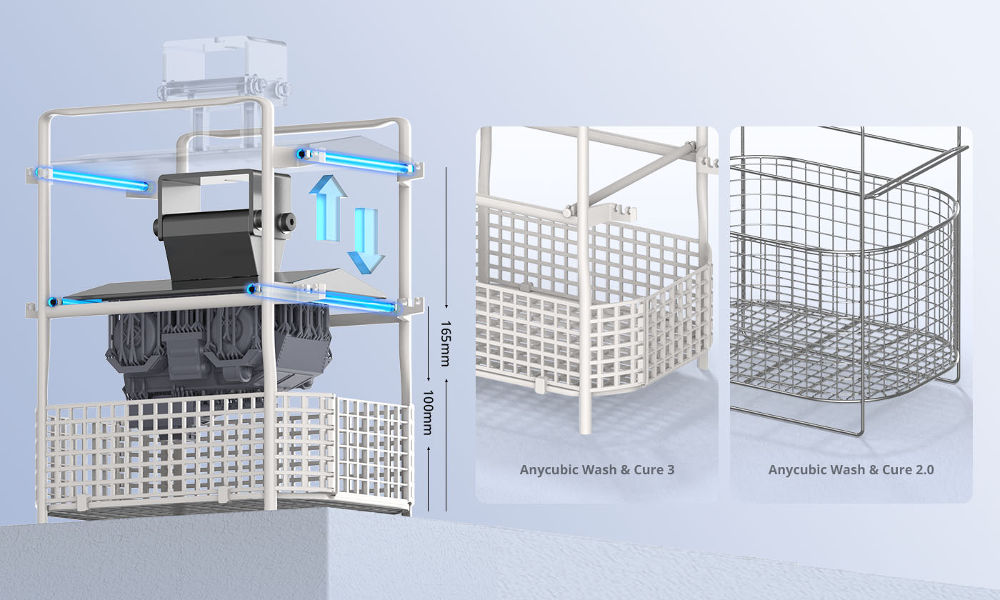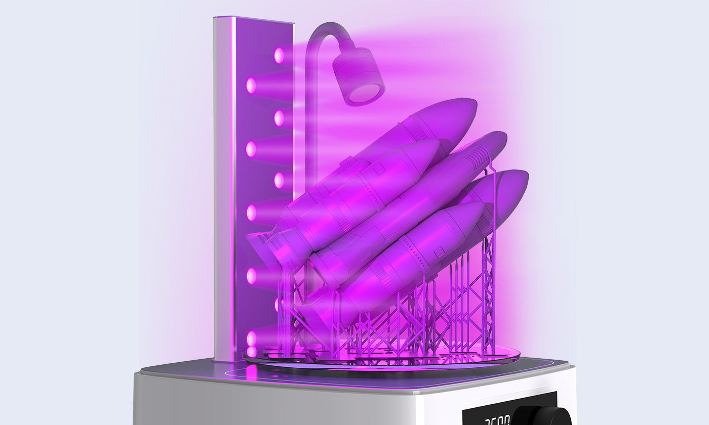 Grâce à un tout nouvel agencement des perles lumineuses et de la source lumineuse à lentille, l'uniformité de polymérisation de l'Anycubic Wash & Cure 3 a été améliorée de 20 % par rapport à son prédécesseur, le modèle 2.0. Il en résulte une polymérisation plus complète et plus approfondie de l'ensemble du modèle.