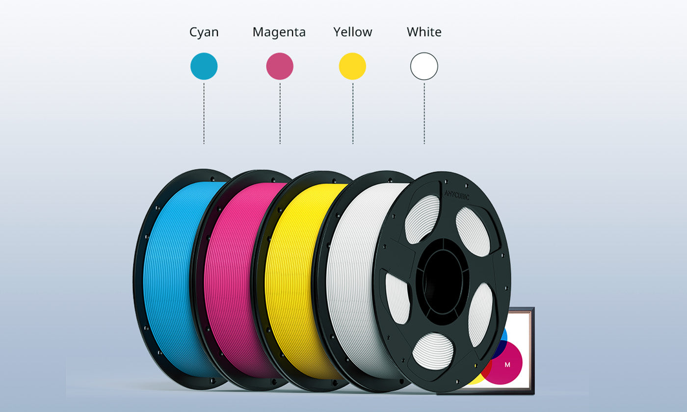 Le filament CMYK translucide Anycubic utilise le cyan, le magenta, le jaune et le blanc pour produire des impressions multicolores époustouflantes avec l'ACE Pro. En tirant parti du principe du mélange des couleurs translucides, les couches de filament qui se superposent se mélangent pour créer de nouvelles couleurs. En ajustant les proportions des quatre couleurs, vous pouvez générer plus d'un million de combinaisons de couleurs uniques à la lumière.