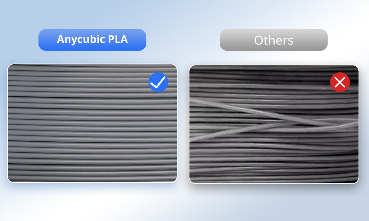 Le filament PLA Anycubic est conçu par des experts pour une impression parfaite. Chaque bobine est enroulée de manière uniforme et soigneusement emballée pour éviter les enchevêtrements et garantir une alimentation régulière et fluide. Cela élimine les bourrages et garantit à chaque fois des taux de réussite d'impression exceptionnels.