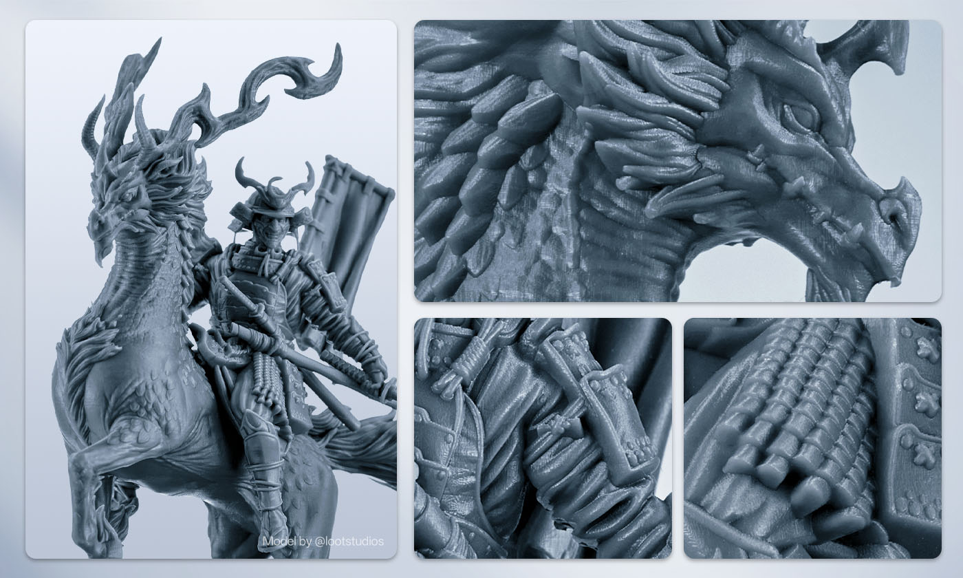 Offre un niveau de détail exceptionnel, capturant même les contours les plus complexes et les caractéristiques les plus délicates, tout en garantissant une texture remarquablement lisse qui semble aussi polie qu'elle en a l'air. Tout cela contribue à donner vie à vos impressions.