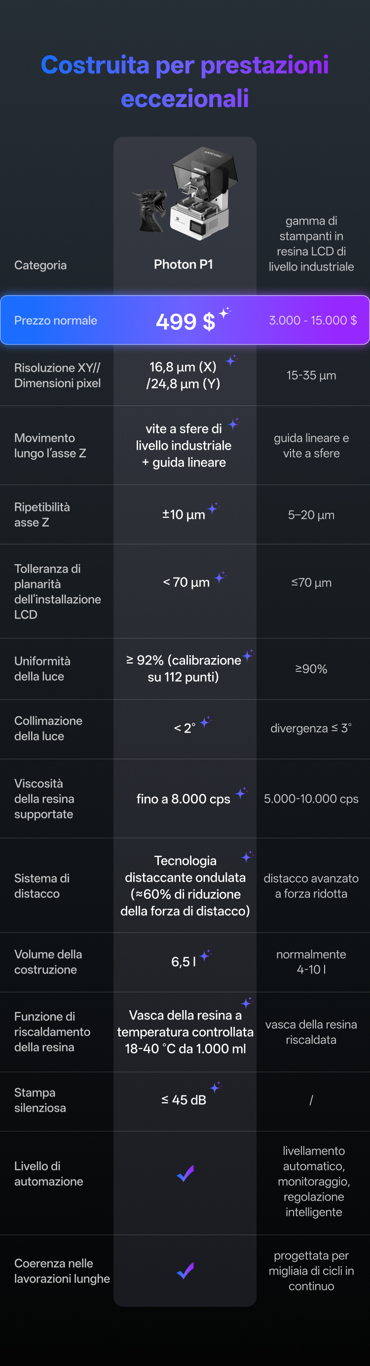 La Photon P1 imprime deux couleurs ou deux types de résine en une seule tâche, éliminant ainsi le besoin de tirages séparés. Son slicer permet des réglages indépendants pour chaque réservoir, ce qui garantit la stabilité et la cohérence des deux matériaux au sein d’une même impression. Lorsque vous travaillez avec des résines haut de gamme, cette configuration réduit également les gâches et diminue les coûts globaux de matériaux.