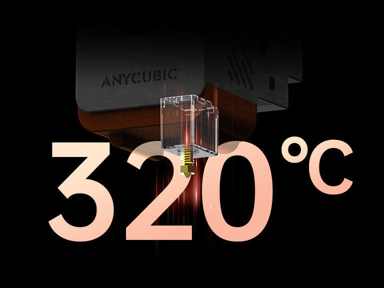 - Hotend à dégagement rapide sans outil, supportant jusqu’à 320 °C