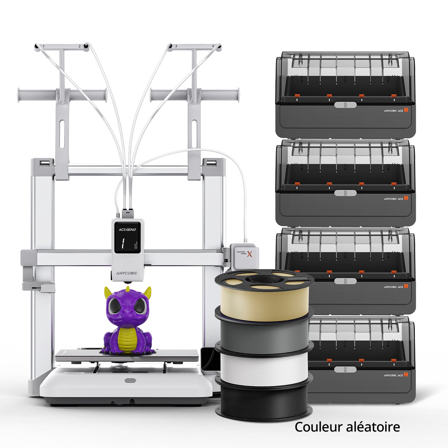Il est possible d’utiliser l’ACE 2 Pro à la place du support de filament de la Kobra X pour l’impression en 4 couleurs. Cependant, nous recommandons de placer l’ACE 2 Pro à droite de la Kobra X pour un fonctionnement optimal.