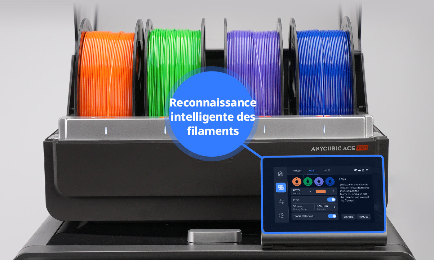 Les filaments sont équipés de puces d’identification intelligente qui s’intègrent parfaitement à l’ACE Pro, permettant l’identification automatique des paramètres d’impression et améliorant l’expérience d’impression.