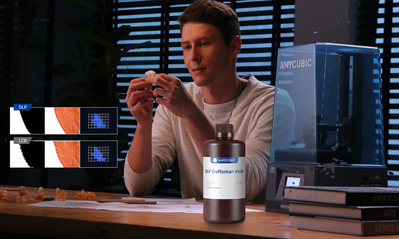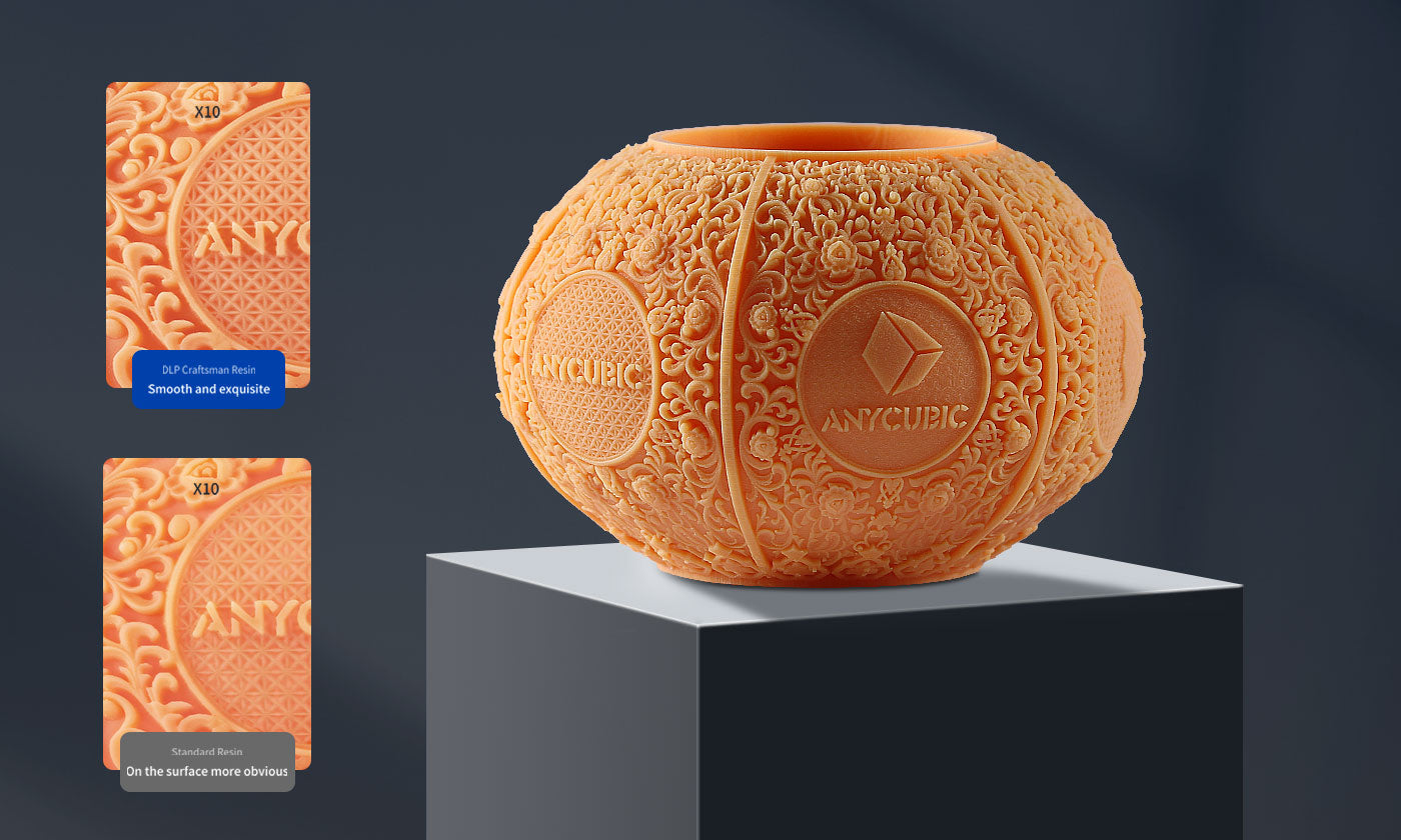 En septembre 2021, Anycubic Photon Ultra est devenue la première imprimante 3D grand public dotée de la technologie DLP dans l'industrie. En 2022, Anycubic a fait un bond en avant important dans la technologie DLP avec la sortie de l'Anycubic Photon D2. Et cette résine DLP Craftsman a été développée pour tirer pleinement parti de son impression haute précision.