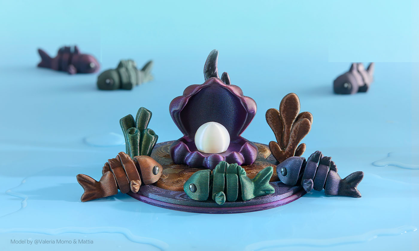 Le PLA Galaxy présente une finition irisée qui révèle de nouvelles couleurs à chaque tour. C'est le filament idéal pour créer des modèles qui attirent l'attention, qu'il s'agisse d'animaux marins, de figurines design ou d'œuvres d'art époustouflantes.