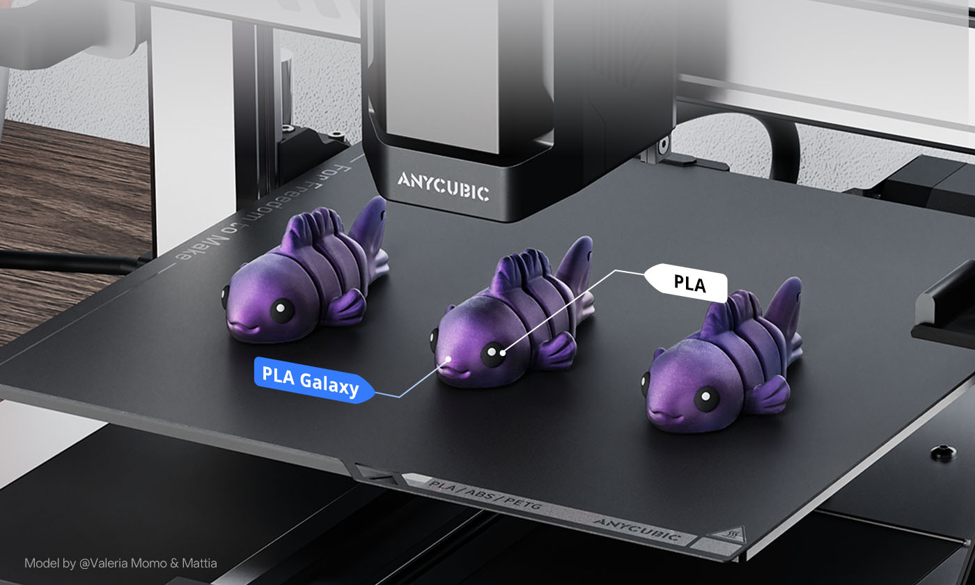 Le PLA Galaxy d'Anycubic utilise les paramètres d'impression PLA standard pour une expérience plug-and-play adaptée aux débutants. Profitez de résultats constants et fiables du début à la fin, même après avoir rechargé le filament.