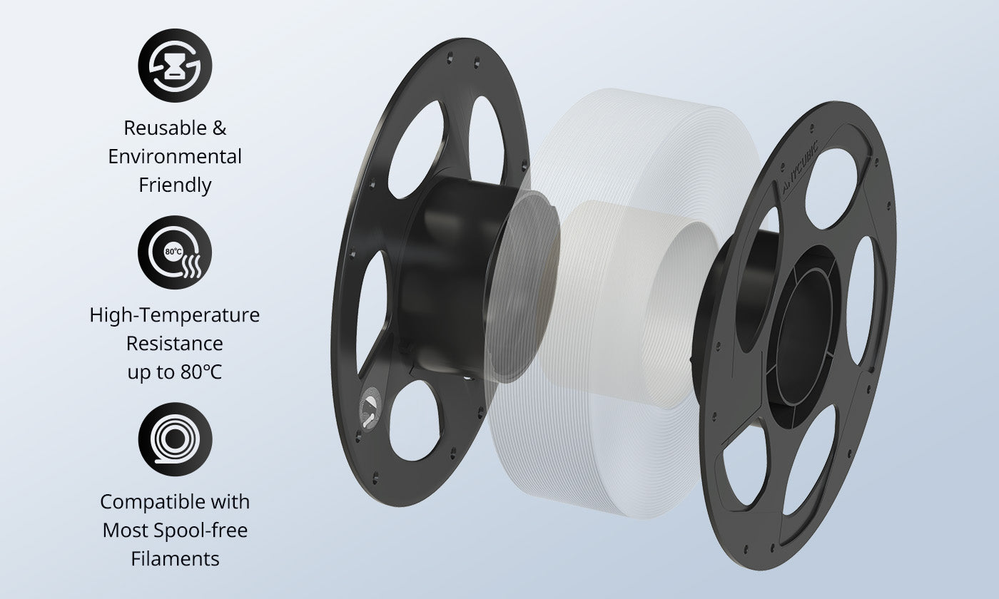 La bobine de filament réutilisable intègre un système de connexion filetée conçu pour une stabilité accrue lorsqu'elle est associée à des filaments sans bobine. Cette conception réduit considérablement le risque d'enchevêtrement, de dispersion du filament et d'erreurs opérationnelles.
