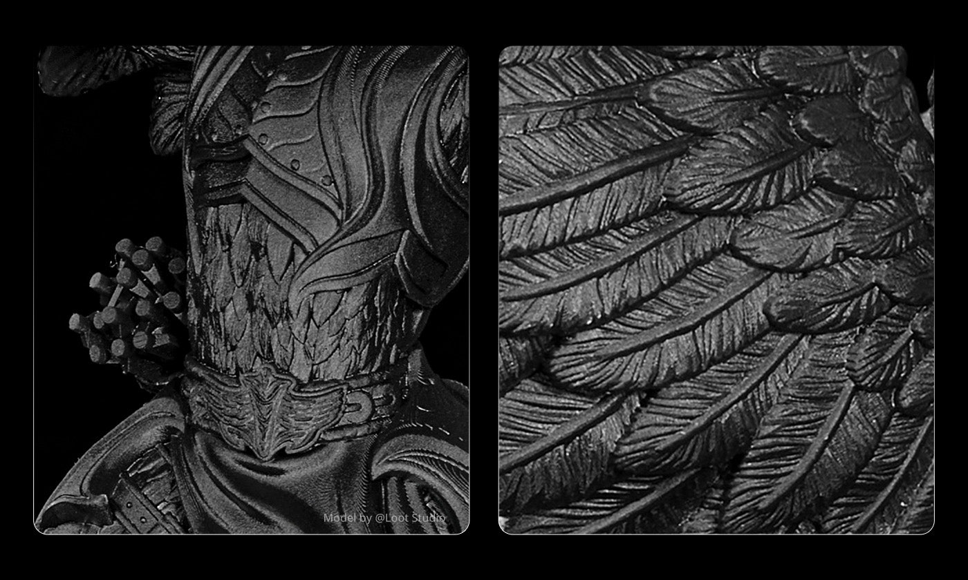 La résine haute vitesse 2.0 permet d'imprimer rapidement des prototypes et des composants structurels, et convient à l'impression d'outils de cosplay de grande taille qui ne nécessitent pas une grande précision.
